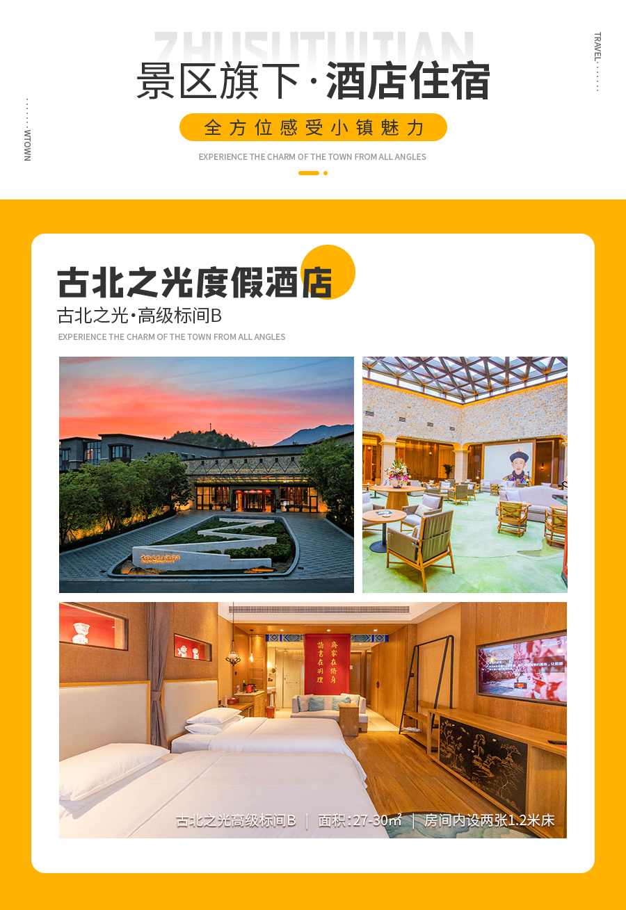 6、由于景区酒店均为特色酒店,空间大小各不相同,图片仅供参考,若因酒店维保休整,景区将为您调整房间至与您预订酒店同等级的酒店客房入住,感谢配合。