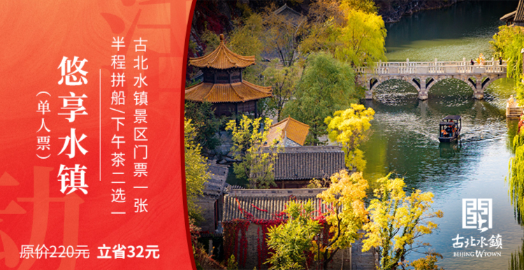水镇大酒店豪华大床/豪华标间住宿1间1晚+古北水镇门票2张+双人青叶水吧下午茶/半程拼船票2张/双人圆通塔禅茶/软陶DIY体验2份(4选1)+早餐2份+汤泉票2张+水镇大酒店免费游泳、健身房体验+入住期间无限次摆渡车乘坐