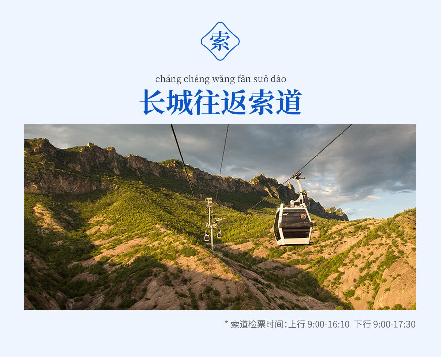 》景区旗下酒店住宿客人可享受夜游长城活动优惠120元/人(含往返索道)。