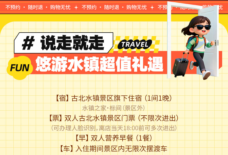 》游客服务中心大前台(水镇大酒店客人前往水镇大酒店前台)报预订人信息,办理入住手续并按房间标准入住人数领取水镇门票。