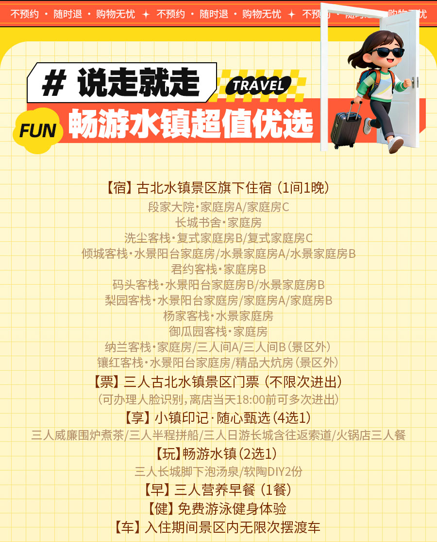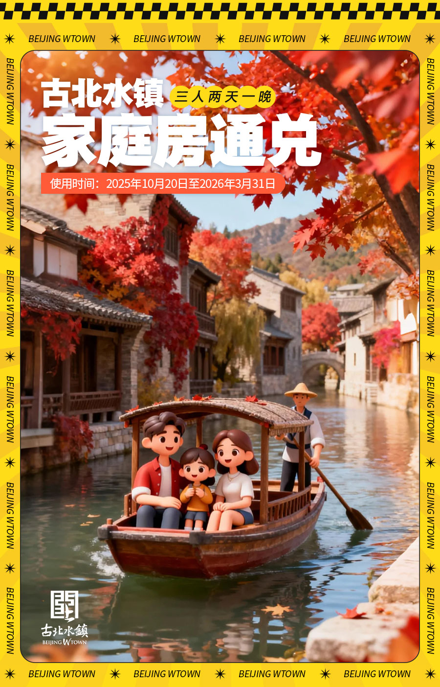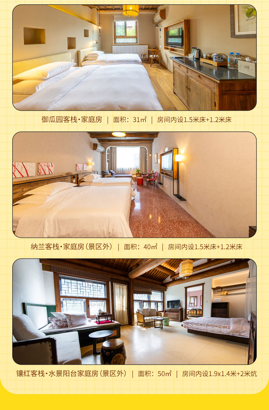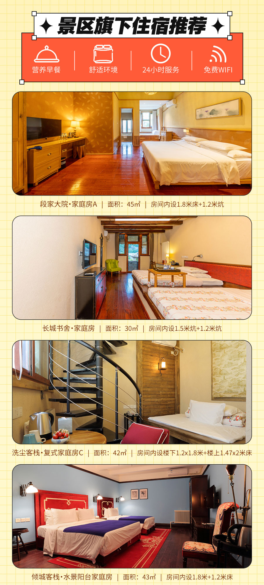 【25双11 客栈家庭房通兑】客栈家庭房住宿1间1晚+古北水镇门票3张+三人威廉围炉煮茶/3人半程游船(拼船)/三人日游长城+往返索道/火锅店3人餐(4选1)+汤泉票3张/软陶DIY体验2份(2选1)+早餐3份+入住期间无限次摆渡车乘坐 包含房型(随机安排):段家家庭房A、家庭房C/长城书舍家庭房/洗尘复式家庭房B、复式家庭房C/倾城客栈水景阳台家庭房、水景家庭房A、水景家庭房B//君约家庭房B//码头水景阳台家庭房 B、水景家庭房B//梨园水景阳台家庭房、家庭房A、家庭房B/杨家水景家庭房/御瓜园家庭房/(景区外)纳兰客栈家庭房、三人间B、三人间A/(景区外)镶红水景阳台家庭房、镶红精品大炕房