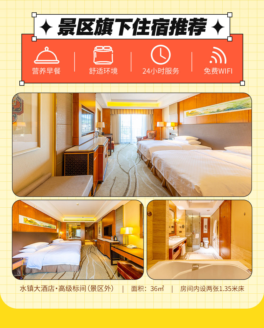 6、由于景区酒店均为特色酒店,空间大小各不相同,图片仅供参考,若因酒店维保休整,景区将为您调整房间至与您预订酒店同等级的酒店客房入住,感谢配合。