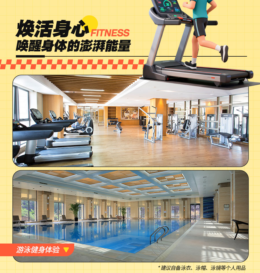 2、汤泉、泳池体验需要自备泳衣、泳帽、泳镜等个人用品,也可在体验处购买,汤泉为入住期间有效,使用地点为景区内当天开放汤泉馆,汤泉开放情况以当天景区确认为准,凡是有泡汤需求客人需先预约。