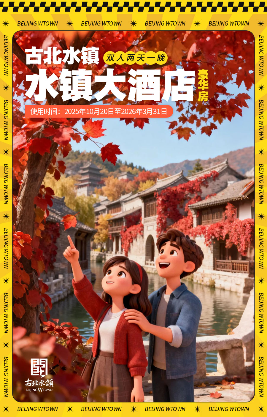 【25双11水镇大酒店豪华大床/标间】 水镇大酒店豪华大床/豪华标间1间1晚+古北水镇门票2张+双人青叶水吧下午茶/半程拼船票2张/双人圆通塔禅茶/软陶DIY体验2份(4选1)+早餐2份+汤泉票2张+水镇大酒店免费游泳、健身房体验+入住期间无限次摆渡车乘坐