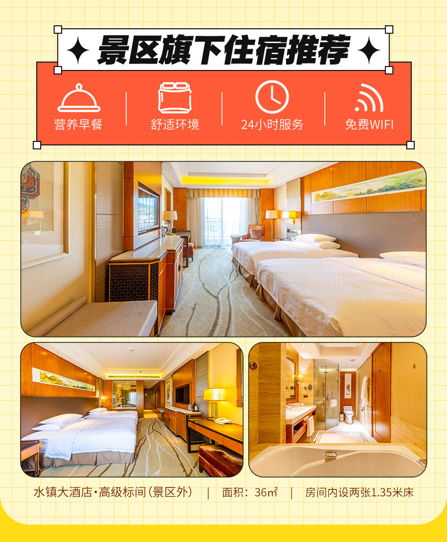 》游客服务中心大前台(水镇大酒店客人前往水镇大酒店前台)报预订人信息,办理入住手续并按房间标准入住人数领取水镇门票。