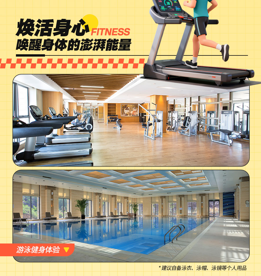 2、汤泉、泳池体验需要自备泳衣、泳帽、泳镜等个人用品,也可在体验处购买,汤泉为入住期间有效,使用地点为景区内当天开放汤泉馆,汤泉开放情况以当天景区确认为准,凡是有泡汤需求客人需先预约。