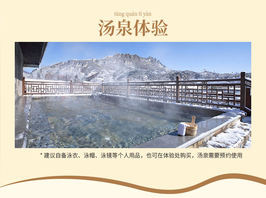 4、为了您和他人的健康,请着泳衣泡汤泉或游泳,您可自带泳衣或在景区现场进行购买。