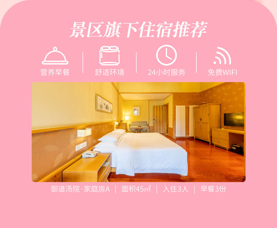 2、此价格为淡季非周末价格,御道汤院家庭房A周六补差350元/间夜;