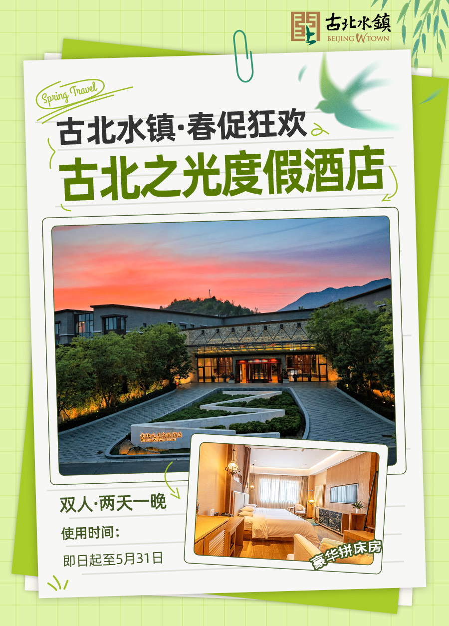 【春促古北之光 豪华拼床】 古北之光豪华拼床住宿1间1晚+古北水镇门票2张+汤泉票2张+半程拼船票2张/青叶水吧双人下午茶1次/双人御道围炉煮茶1次/双人圆通塔院下午茶1次(4选1)+早餐2份+古北之光免费游泳、健身房体验+入住期间无限次摆渡车乘坐