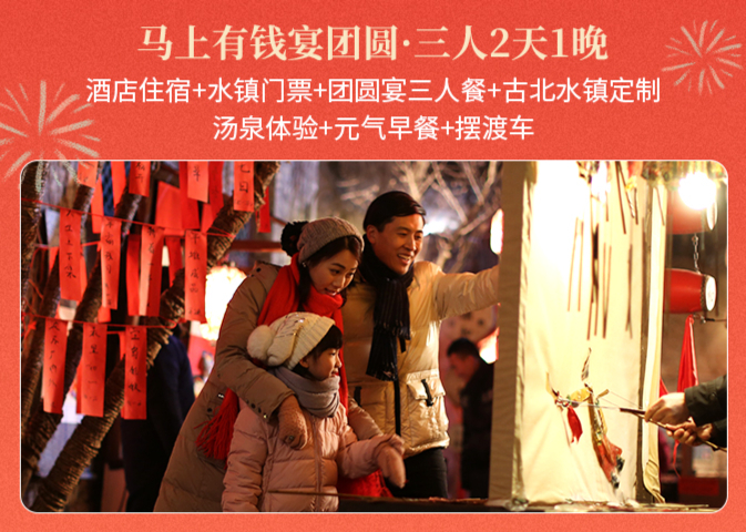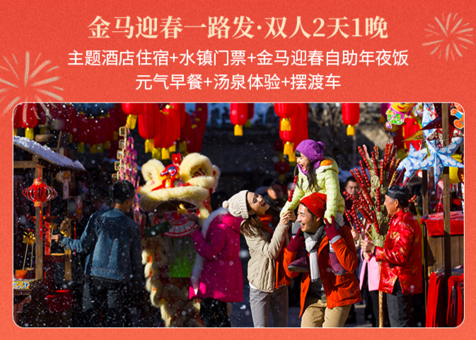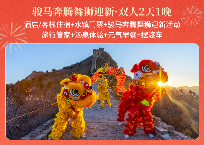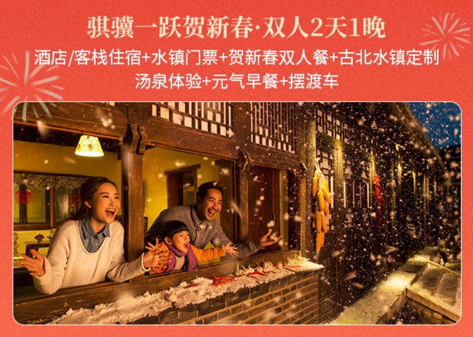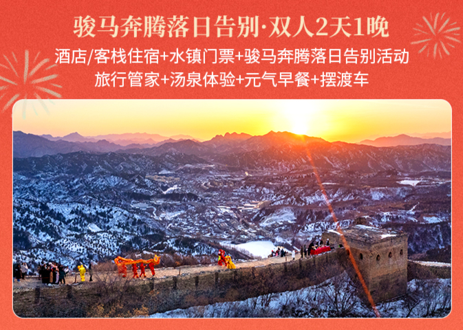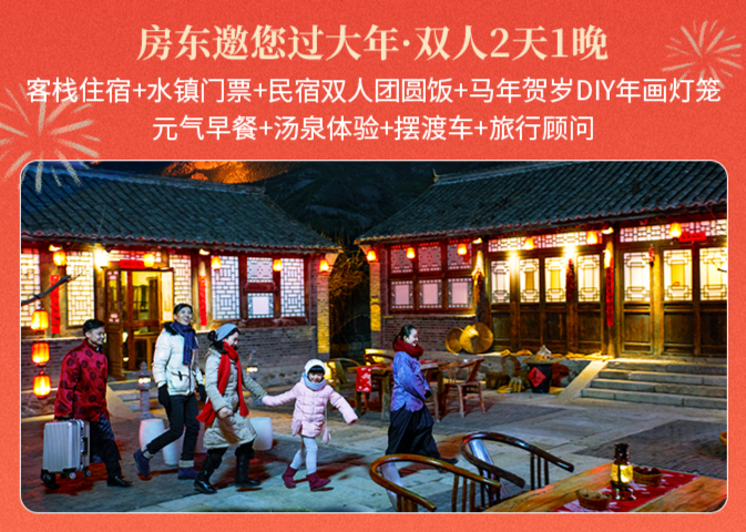 古北水镇旗下客栈 1 间 1 晚+古北水镇门票 2 张+民宿客栈双人团圆饭+马年贺岁 diy 年画灯笼 1 个+旅行顾问+双人早餐+入住期间无限次摆渡车乘坐+双人汤泉1次